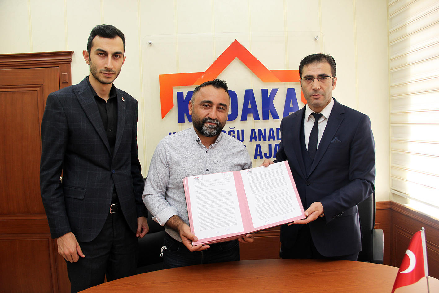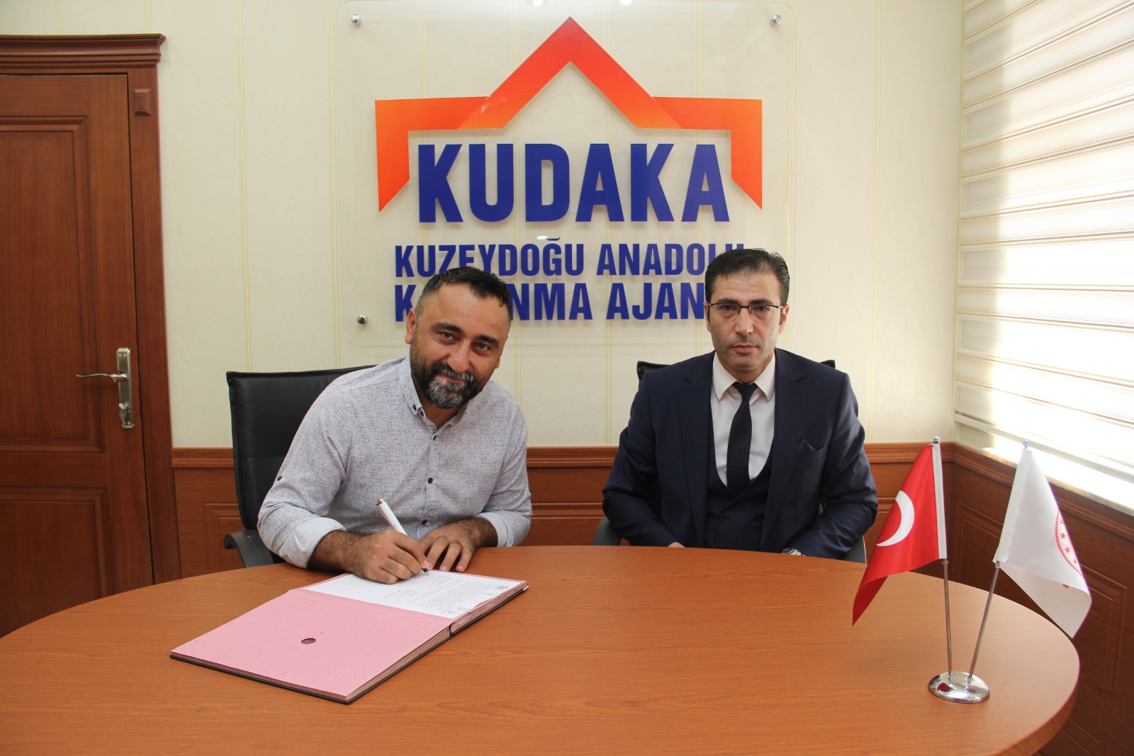 KUDAKA 2021 Yılı Finansman Desteği Programı kapsamında onaylanan “Tekstil üretimi ve istihdam” isimli projenin destek sözleşmesi Ajans Genel Sekreteri Oktay Güven ile Erzincan CTT Tekstil Firma yetkilisi Turgay Palut arasında imzalandı.