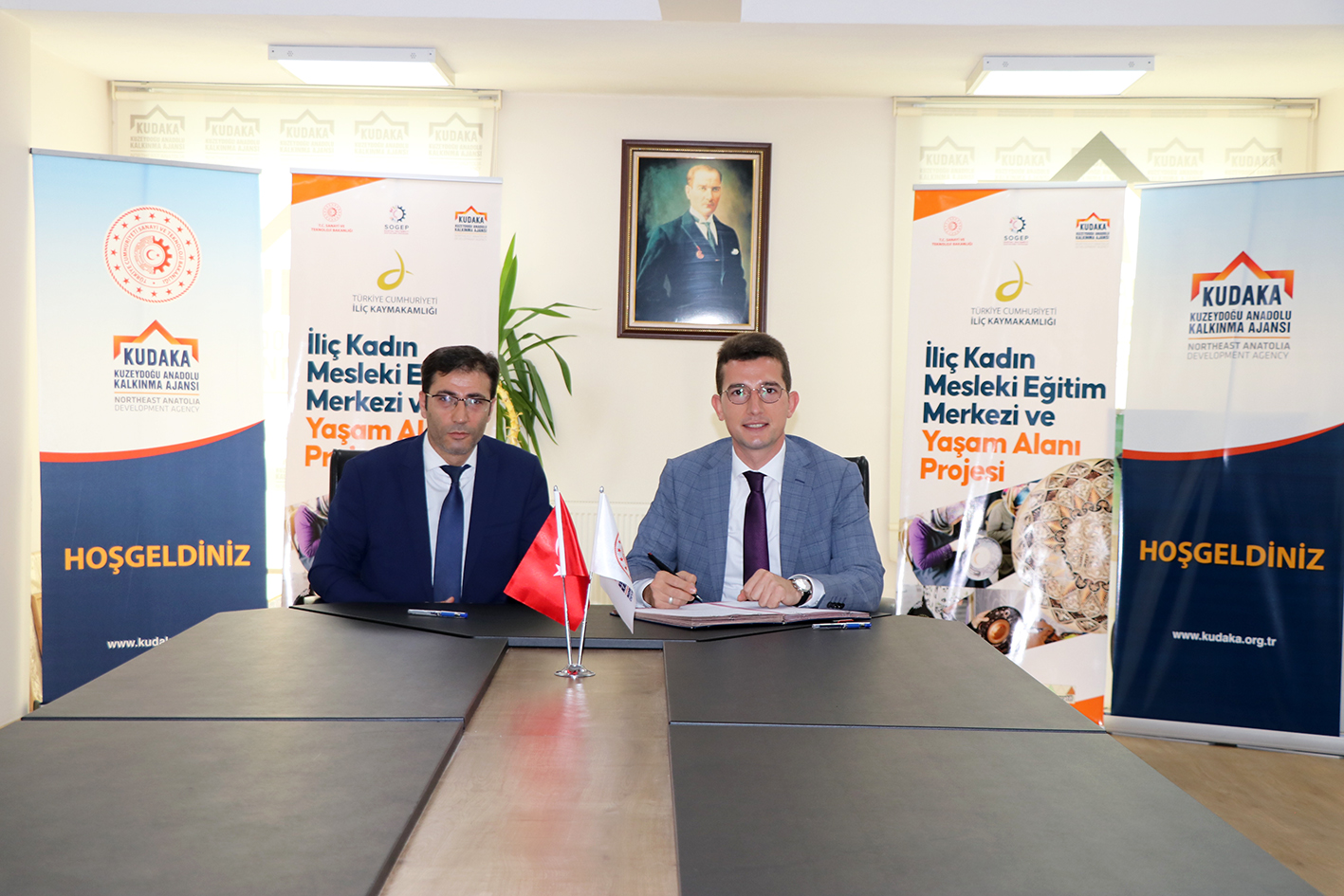 T.C. Sanayi ve Teknoloji Bakanlığı koordinasyonunda Kuzeydoğu Anadolu Kalkınma Ajansı (KUDAKA) tarafından yürütülen 2021 Yılı Sosyal Gelişmeyi Destekleme Programı (SOGEP) kapsamında hazırlanan "İliç Kadın Mesleki Eğitim Merkezi ve Yaşam Alanı” projesinin destek sözleşmesi, KUDAKA ile İliç Kaymakamlığı arasında imzalandı.