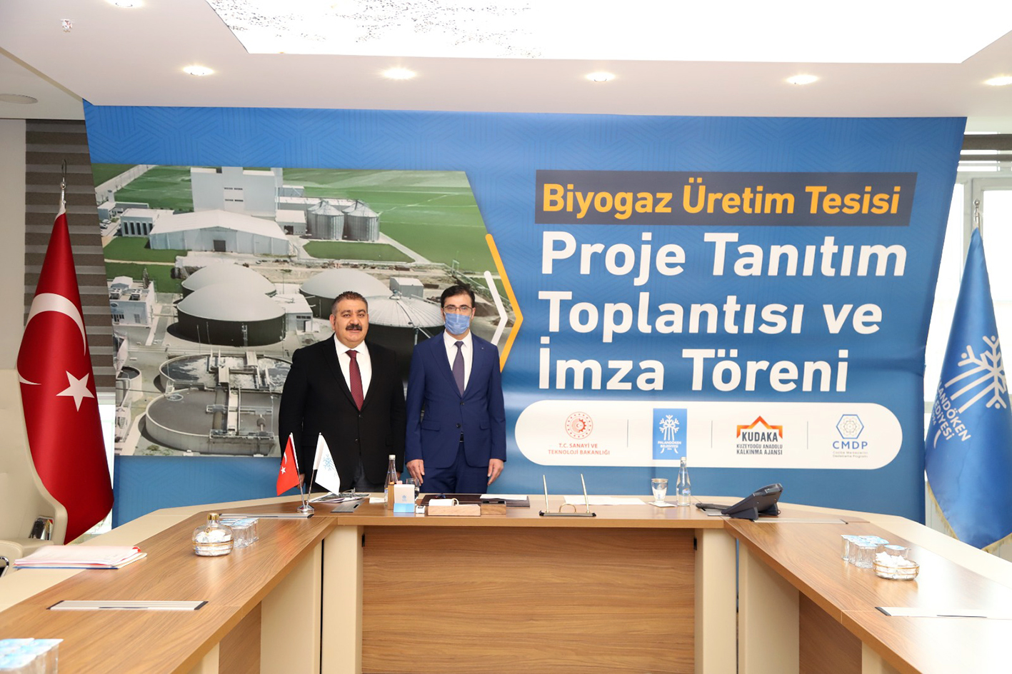 T.C. Sanayi ve Teknoloji Bakanlığı tarafından finanse edilen ve Kuzeydoğu Anadolu Kalkınma Ajansı koordinasyonunda yürütülen Cazibe Merkezlerini Destekleme Programı (CMDP) kapsamında destek almaya hak kazanan “Palandöken Belediyesi Hayvan Atığı Biyogaz Dönüşüm Tesisi Projesi’nin sözleşmesi, KUDAKA Genel Sekreteri Oktay Güven ve Palandöken Belediye Başkanı Muhammet Sunar arasında imzalandı.
