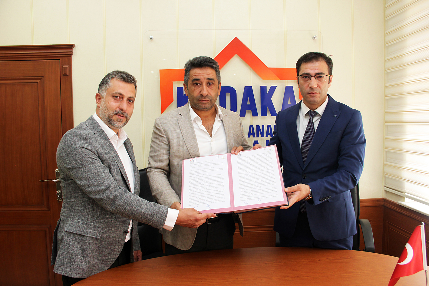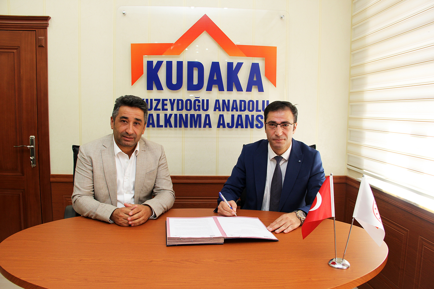 KUDAKA hizmet binasında gerçekleşen imza törenine, Ajans Sekreteri Oktay Güven ve Tercan Belediye Başkanı Lokman Gültekin katıldı.
