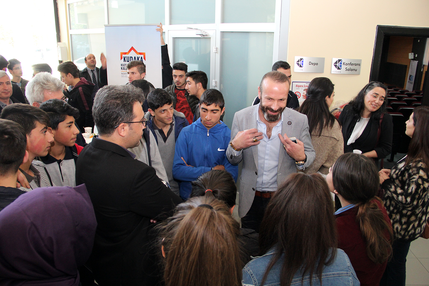 Mesleki ve teknik eğitim kapsamında eğitim vermekte olan okullardan mezun olmuş ya da olacak öğrencilerle alanlarında tecrübeli sanayicilerimiz bir araya getirilerek sanayicilerimizin iş hayatına adım atma süreçleri ile ilgili tecrübelerini gençlerle paylaşmalarına imkân veren görüşmeler, KOSGEB Toplantı Salonu’nda gerçekleştirildi. Toplantıya Erzurum’da hizmet veren 11 farklı meslek okulundan yaklaşık 100 öğrenci katıldı.