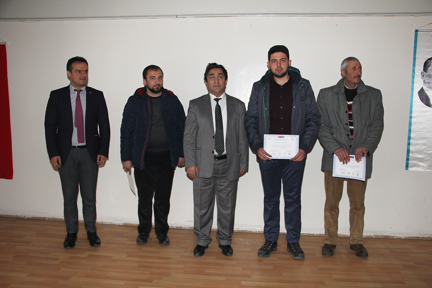 Kuzeydoğu Anadolu Kalkınma Ajansı, Pasinler Ticaret ve Sanayi Odası, Pasinler Gıda Tarım Hayvancılık İlçe Müdürlüğü ve Erzurum Teknik Üniversitesi Sürekli Eğitim Merkezi işbirliği ile düzenlenen ve toplam 211 çiftçinin katlımı ile gerçekleştirilen Modern Hayvancılık Teknikleri konulu eğitimin sertifika töreni KUDAKA Genel Sekreteri Prof. Dr. Osman Demirdöğen, Pasinler İlçe Tarım Müdürü Hamza Moroğlu ve Pasinler Ziraat Odası Başkanı Hayrullah Korucu’nun katılımıyla gerçekleştirildi.